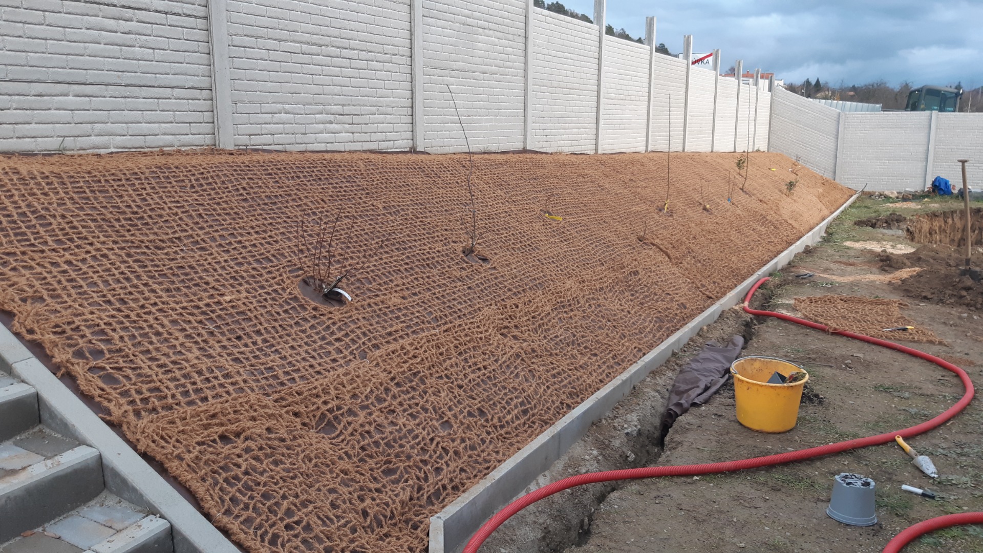 Pokladání travnich koberců +Pokladání plastové sítě proti krtkům,zahrada Brno Líšen