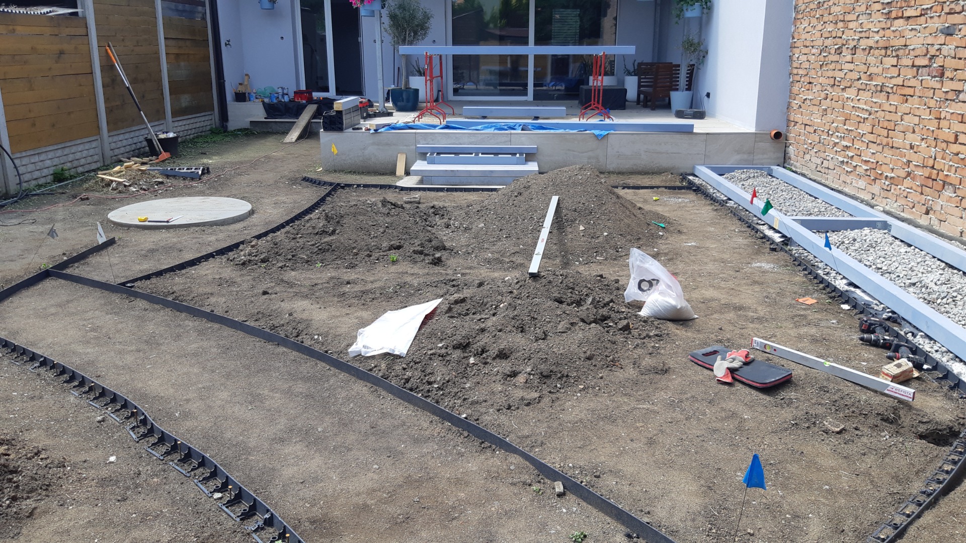 Realizace Zahrady,příprava terénu, pokládka nev. obrubníku ,Rebešovice