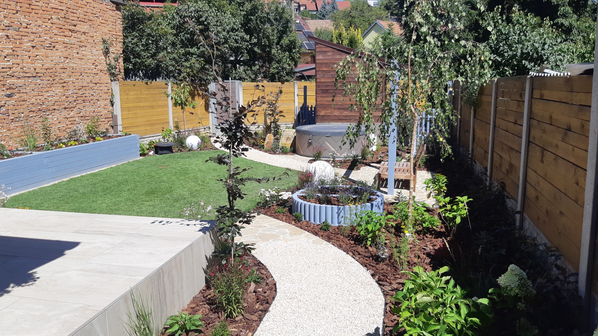 Realizace Zahrady + ohniště a posezení po 1 roce,Rebešovice e